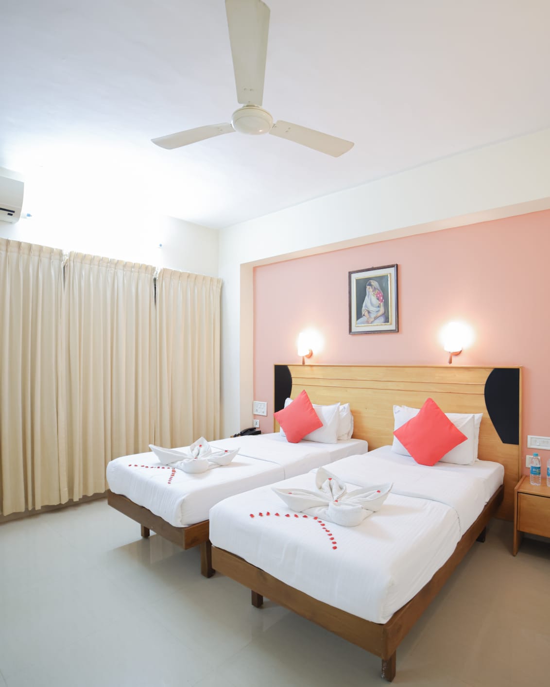 Enjoy warm hospitality, spacious rooms, and authentic vegetarian cuisine, all just minutes from Mangalore’s key attractions and business hubs.